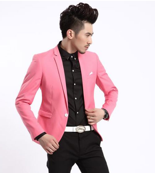 男生粉紅色西服