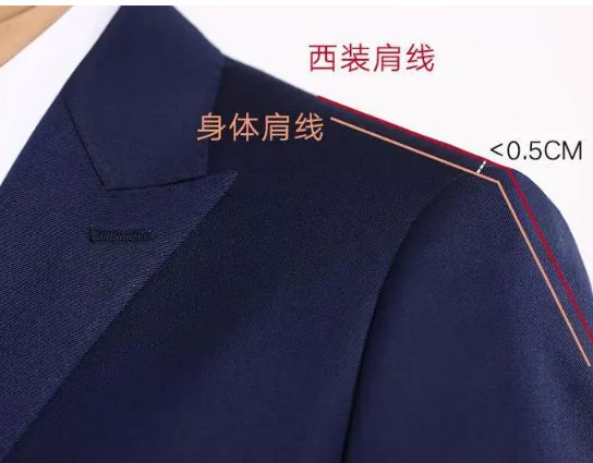 了解了自己是屬于哪種肩型的,然后再判斷定制西服的肩部是否合身。一件合身的西服,西服肩線與身體肩線的間距應在0.5厘米以內,不超出0.5厘米。同時在穿上西服后,應撫摸手臂與肩膀交接處,看看是否與身體線條角度保持一致。