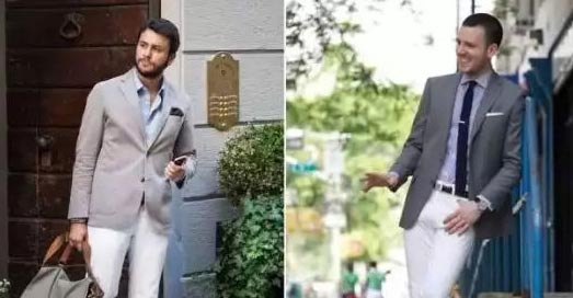 1、灰色、米白色/白色西服外套搭配白色的休閑長(zhǎng)褲和德比鞋,不僅能營(yíng)造清爽視覺,明亮色系的下身也能有效拉長(zhǎng)腿部比例。以白色休閑長(zhǎng)褲和襯衫為基礎(chǔ),展現(xiàn)率性的意大利型男的味道。