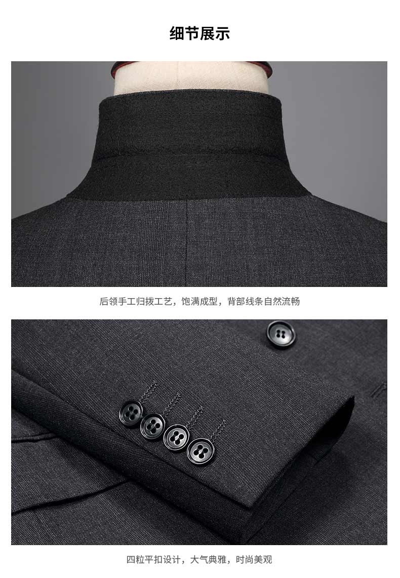 西服外套工藝說明西服外套及馬甲正反面款式圖西褲正反面款式圖西服駁頭細節圖西服內里細節圖西服下擺及西褲腰頭細節圖西褲款式細節圖西褲細節圖馬甲背扣細節圖