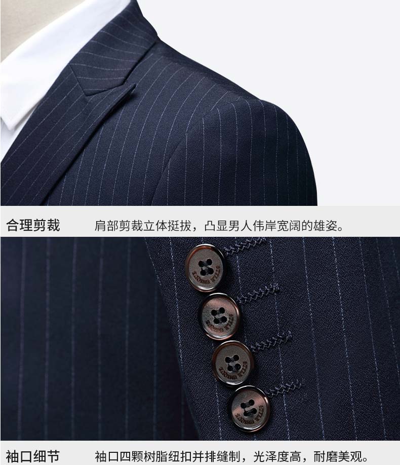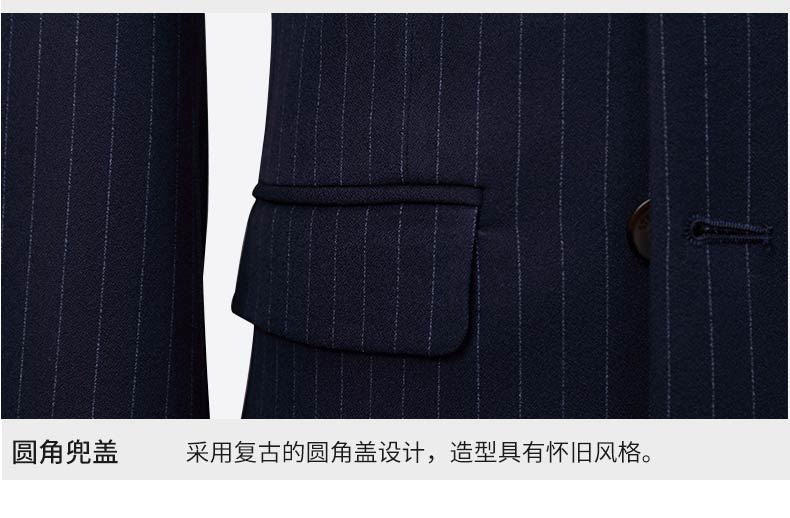 男士條紋雙排扣西裝細節展示圖
