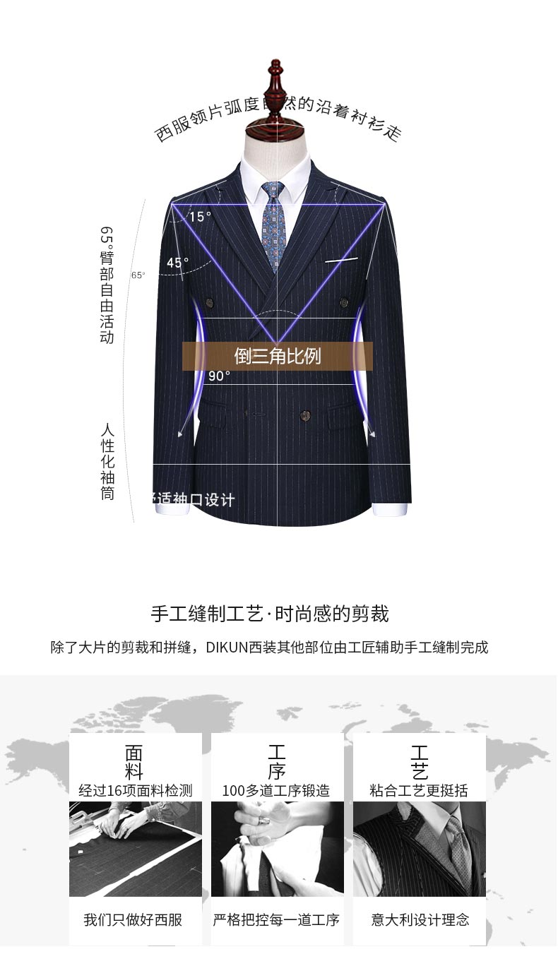 男士條紋雙排扣西裝款式分解圖
