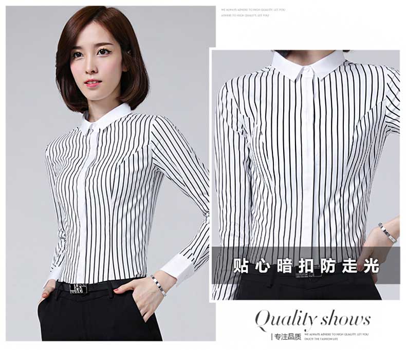 產品名稱:女士黑白條紋撞色拼接襯衫定制
