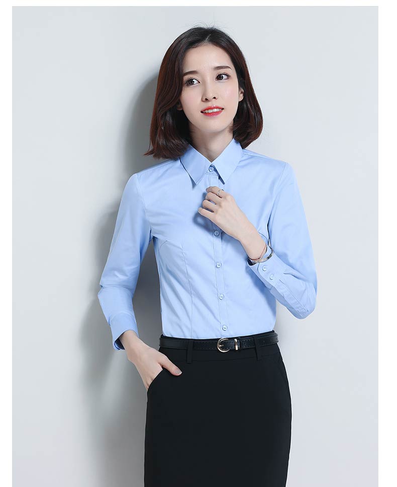職場藍色經(jīng)典職業(yè)襯衫,選用優(yōu)質(zhì)純棉面料,合體裁剪,職場穿著更干練,舒適.