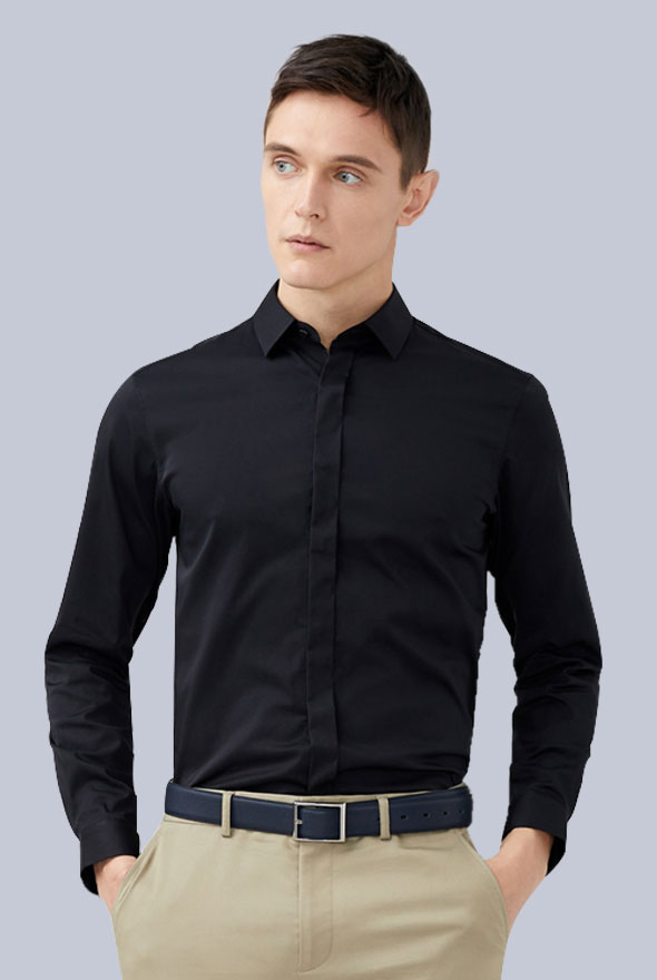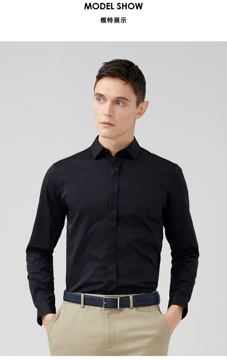 男士黑色襯衫定制款式圖
