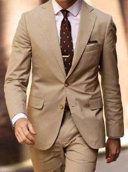 季節交替的時候,不管穿什么衣服,春夏季節搭配一些淺色系衣服看上去更清爽。對于酷愛西裝的男性同胞來說,卡其色的西裝套裝當然是首選。里面搭配一件結拜的襯衫T恤都是不錯的選擇,如果覺得顏色太素,可以選一條色彩艷麗的方巾插在口袋中。